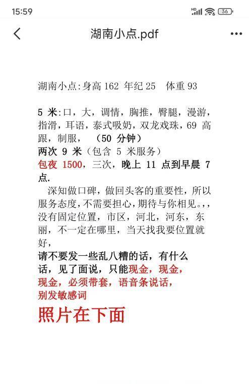 刚加上的湖南妹子,抓紧去体验一下,人照基本上一致,开美颜了,年龄25,26左右的样子,身材不错,活做的挺认真,不敷衍,这个泰式吸奶不错挺有感觉,可以去体验
